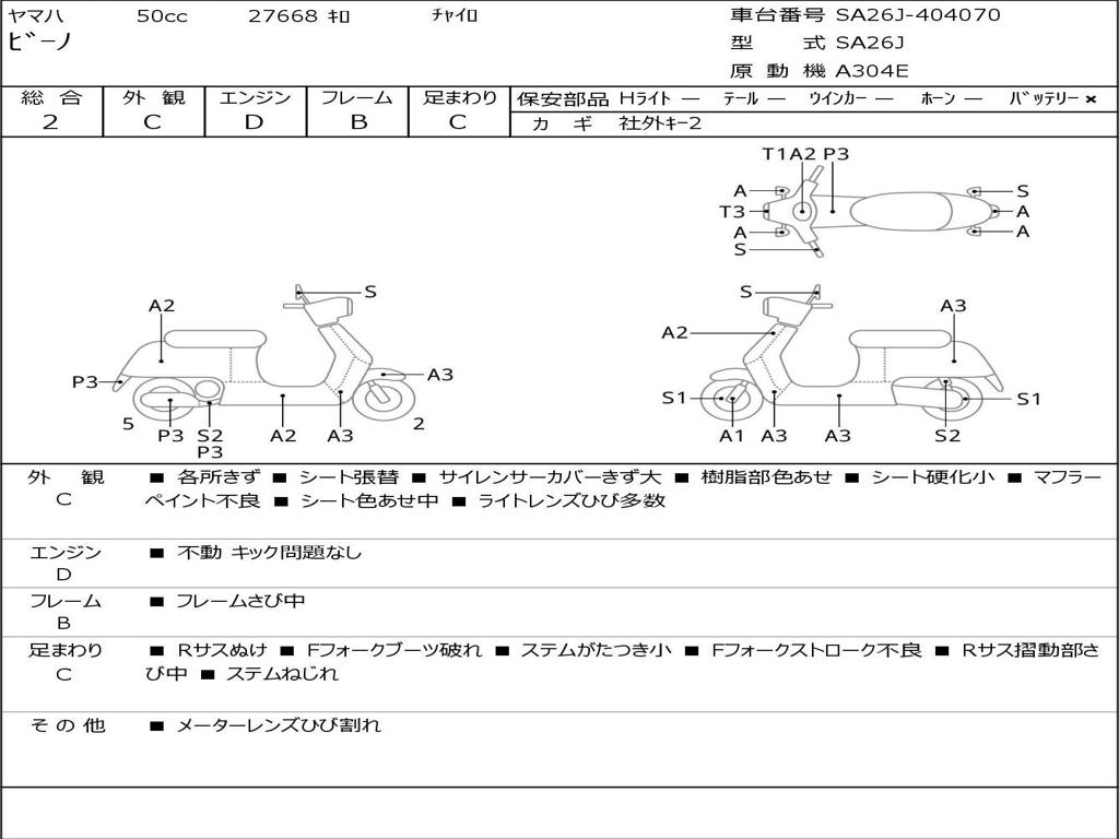 | Номер рамы / VIN | SA26J-404070 |