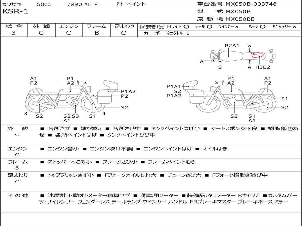 | Номер рамы / VIN | MX050B-003748 |