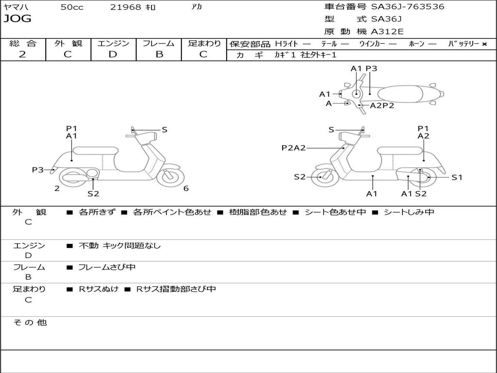 | Номер рамы / VIN | SA36J-763536 |