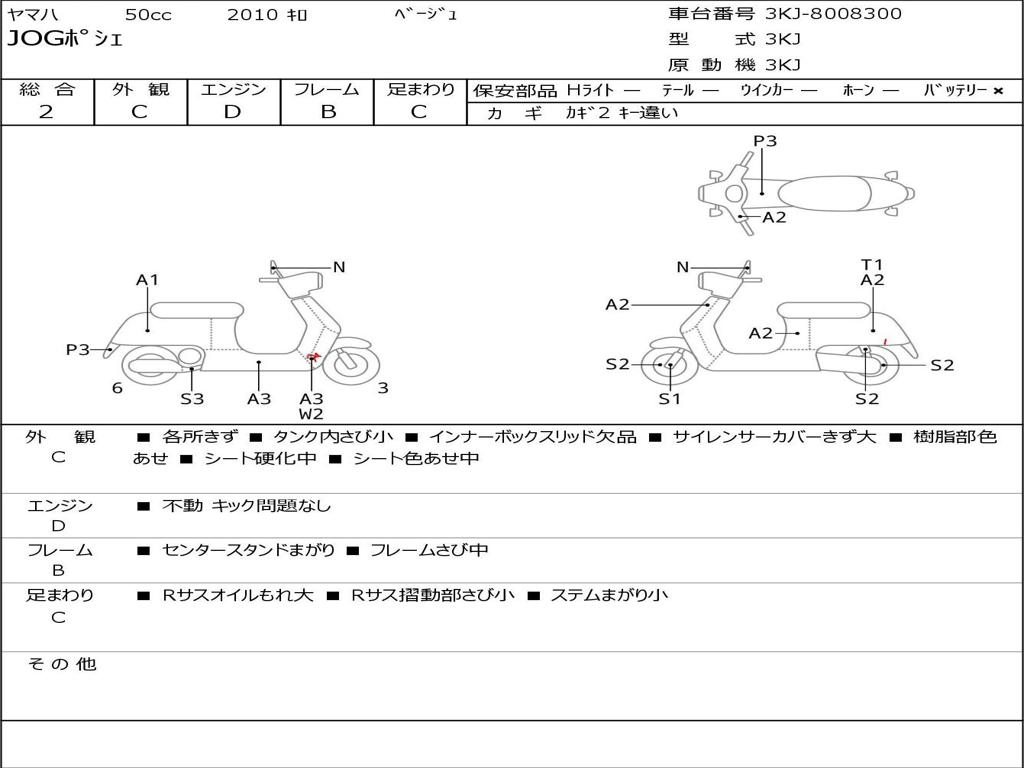 | Номер рамы / VIN | 3KJ-8008300 |