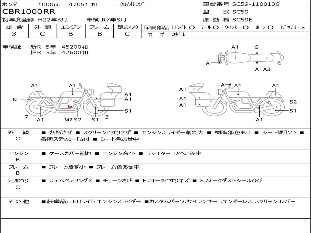 | Номер рамы / VIN | SC59-1100106 |