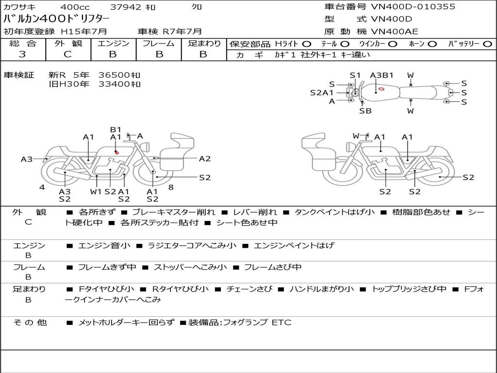 | Номер рамы / VIN | VN400D-010355 |
