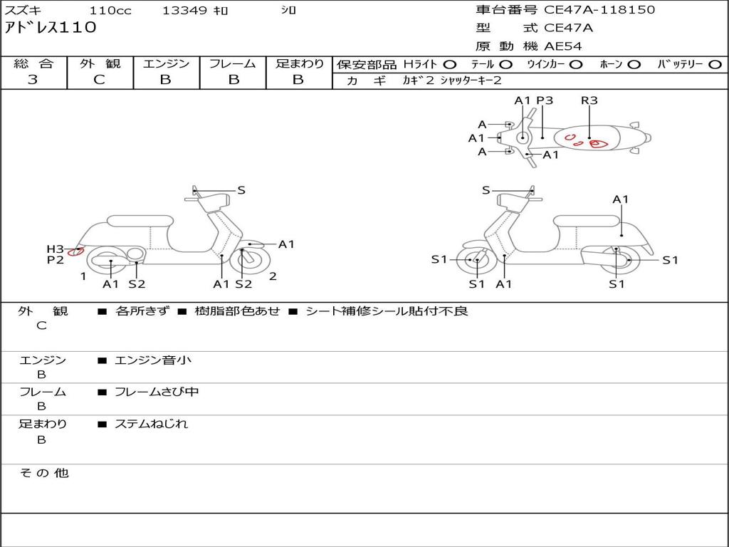| Номер рамы / VIN | CE47A-118150 |