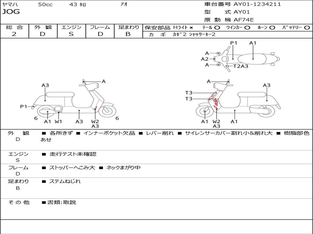 | Номер рамы / VIN | AY01-1234211 |