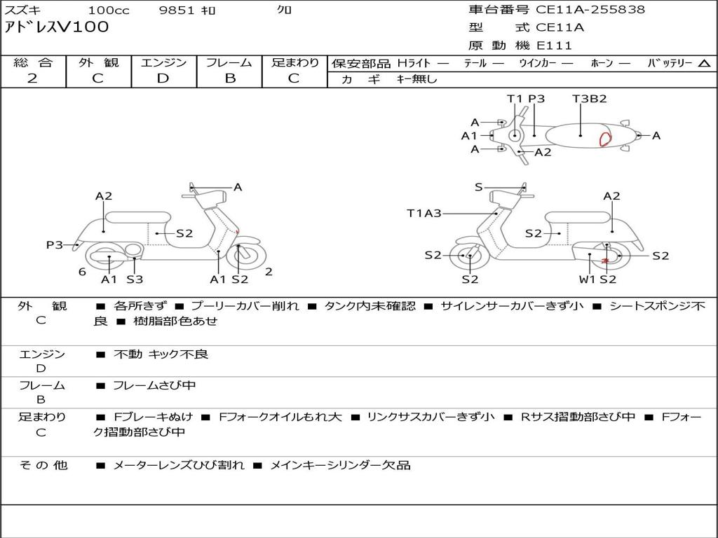 | Номер рамы / VIN | CE11A-255838 |