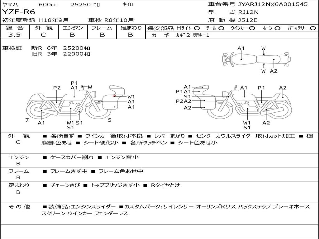 | Номер рамы / VIN | JYARJ12NX6A001545 |