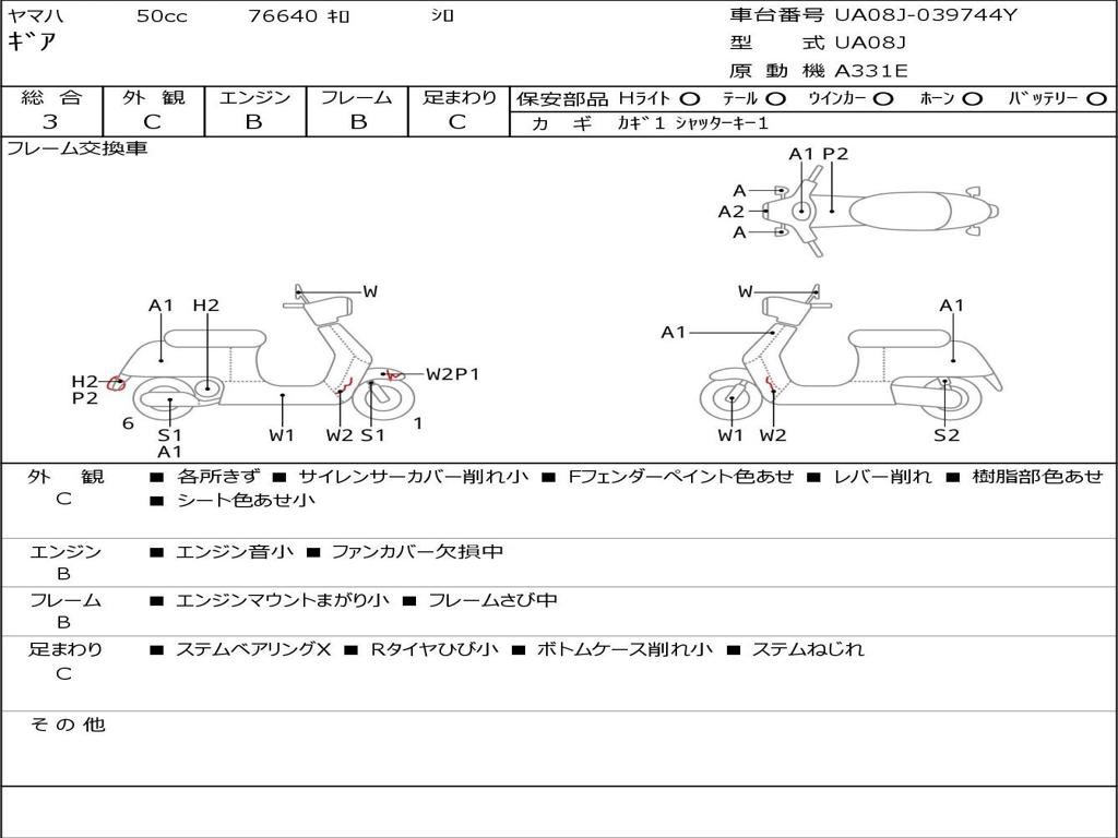| Номер рамы / VIN | UA08J-039744Y |
