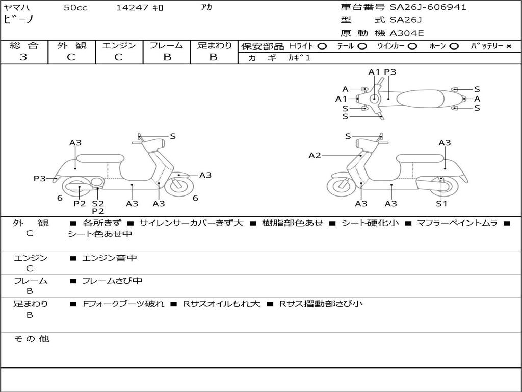 | Номер рамы / VIN | SA26J-606941 |