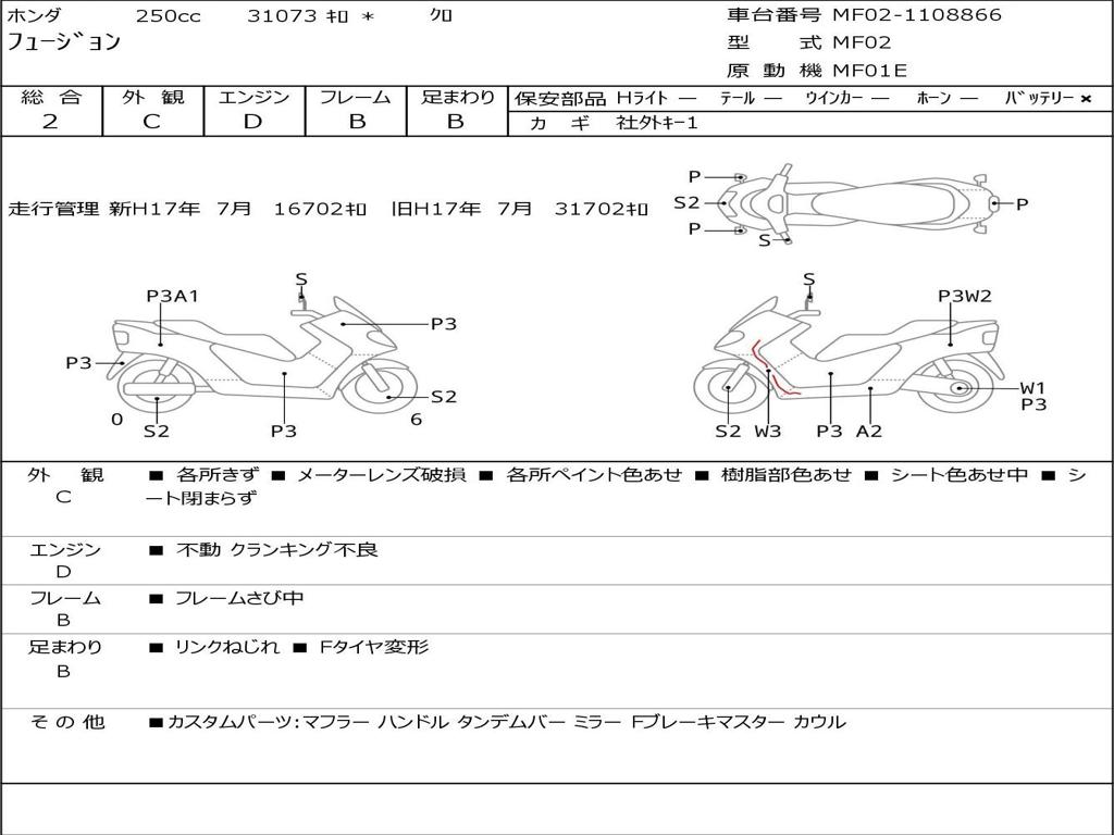 | Номер рамы / VIN | MF02-1108866 |