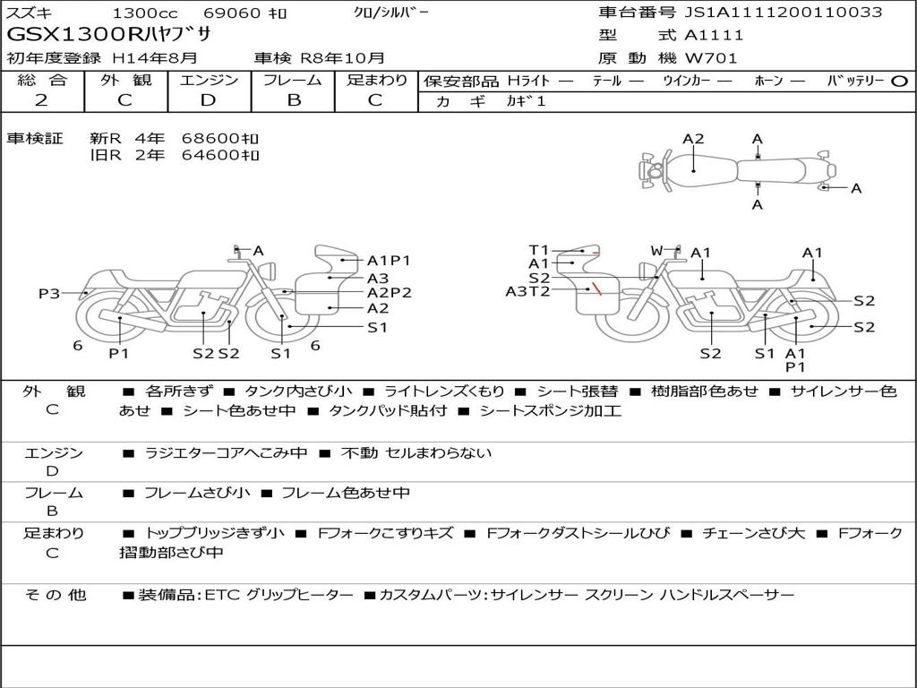 | Номер рамы / VIN | JS1A1111200110033 |