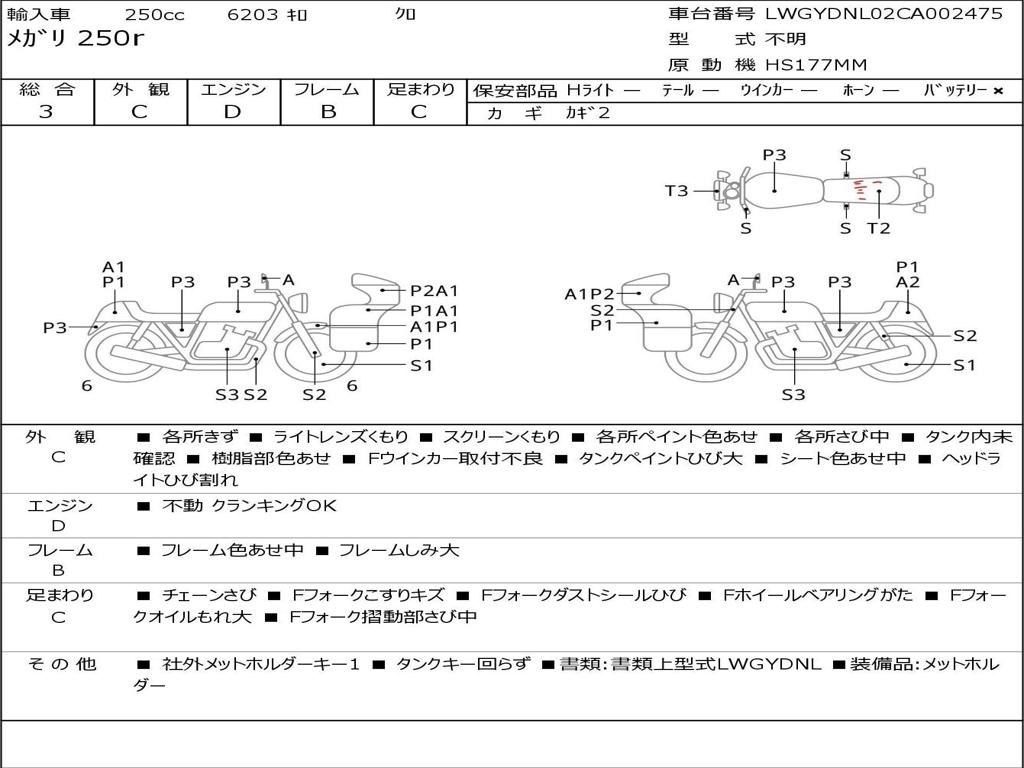 | Отметка об участии мотоцикла в авариях | Мотоцикл не участвовал в ДТП |
