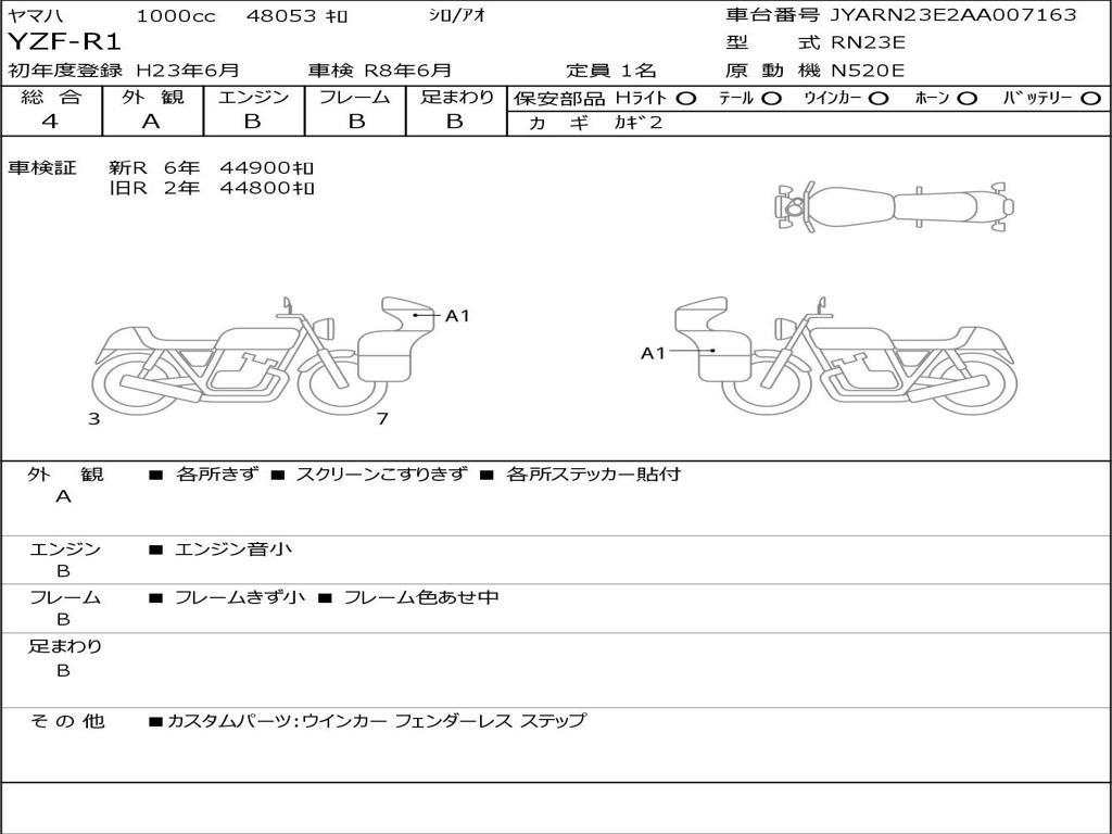 | Номер рамы / VIN | JYARN23E2AA007163 |