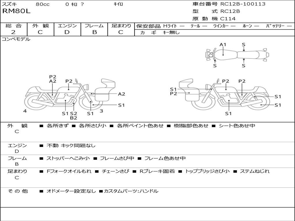 | Номер рамы / VIN | RC12B-100113 |