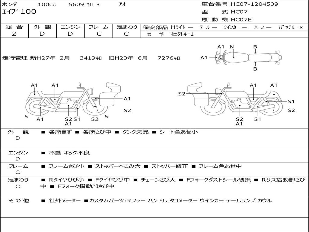 | Номер рамы / VIN | HC07-1204509 |