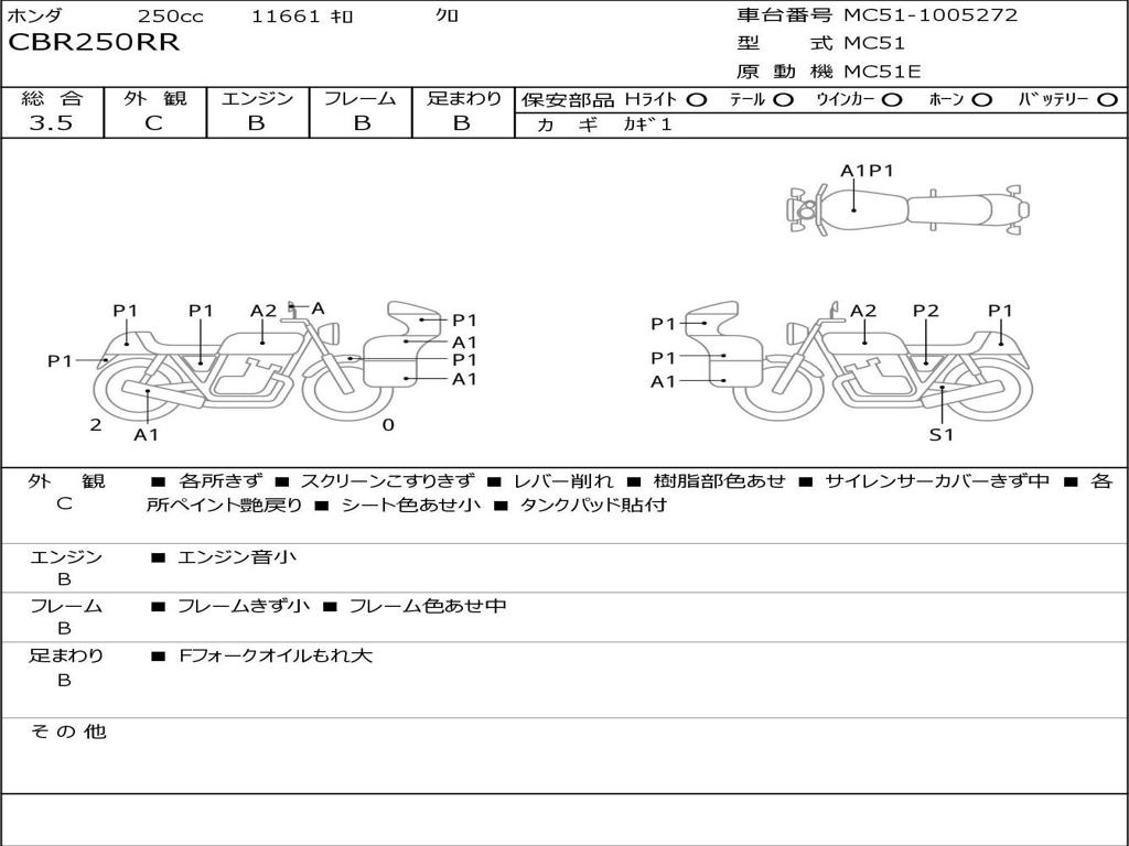 | Номер рамы / VIN | MC51-1005272 |