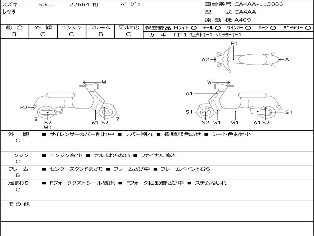 | Номер рамы / VIN | CA4AA-113086 |