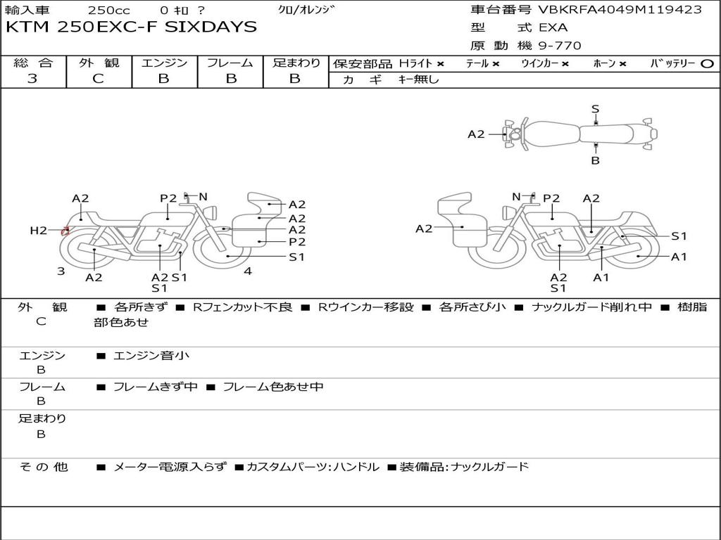 | Номер рамы / VIN | VBKRFA4049M119423 |