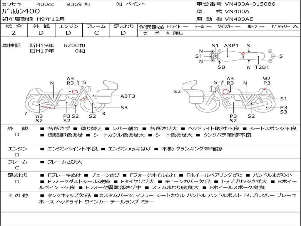 | Номер рамы / VIN | VN400A-015086 |