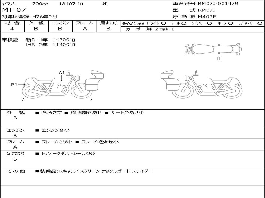| Номер рамы / VIN | RM07J-001479 |
