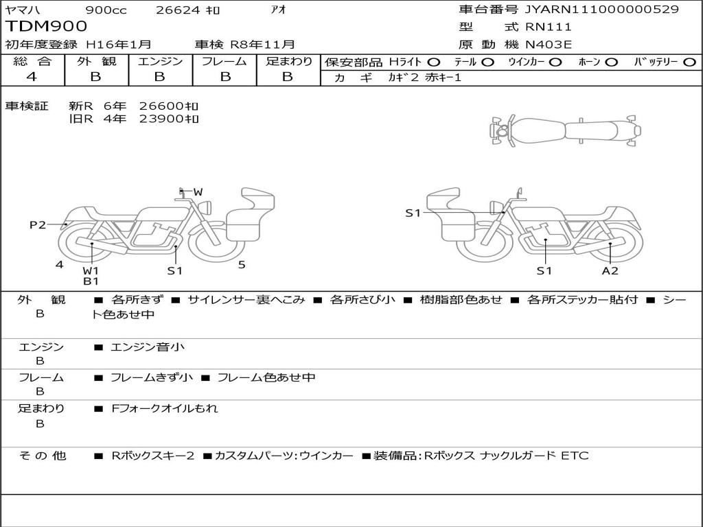 | Номер рамы / VIN | JYARN111000000529 |