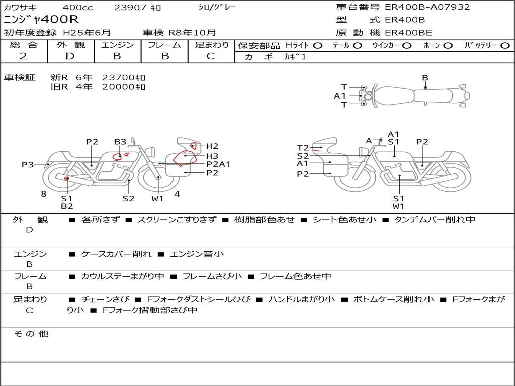 | Номер рамы / VIN | ER400B-A07932 |