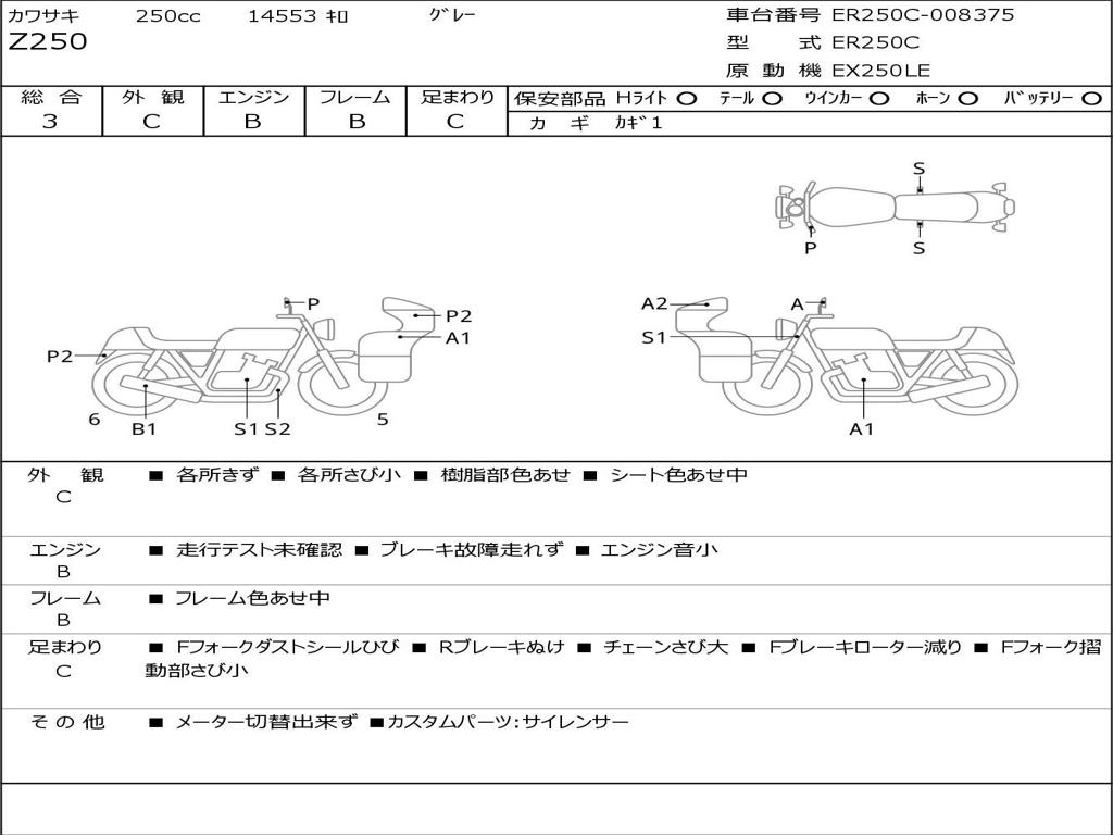 | Номер рамы / VIN | ER250C-008375 |