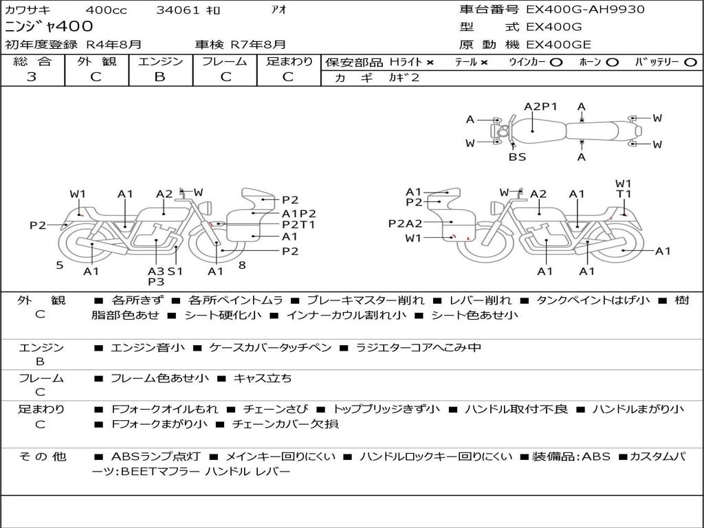 | Номер рамы / VIN | EX400G-AH9930 |