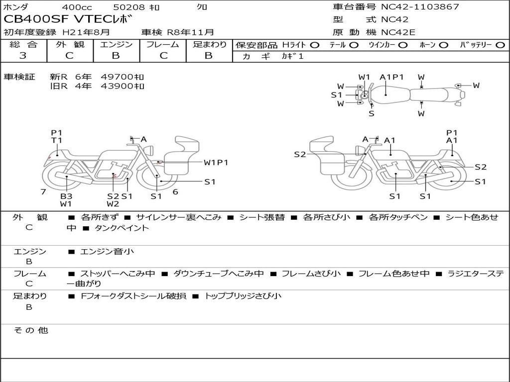 | Номер рамы / VIN | NC42-1103867 |