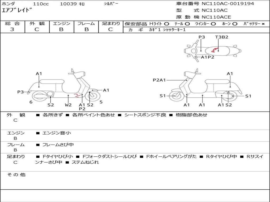 | Номер рамы / VIN | NC110AC-0019194 |