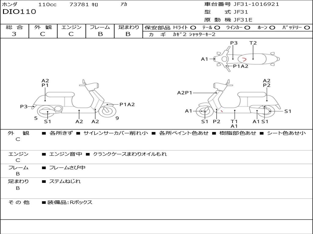 | Номер рамы / VIN | JF31-1016921 |
