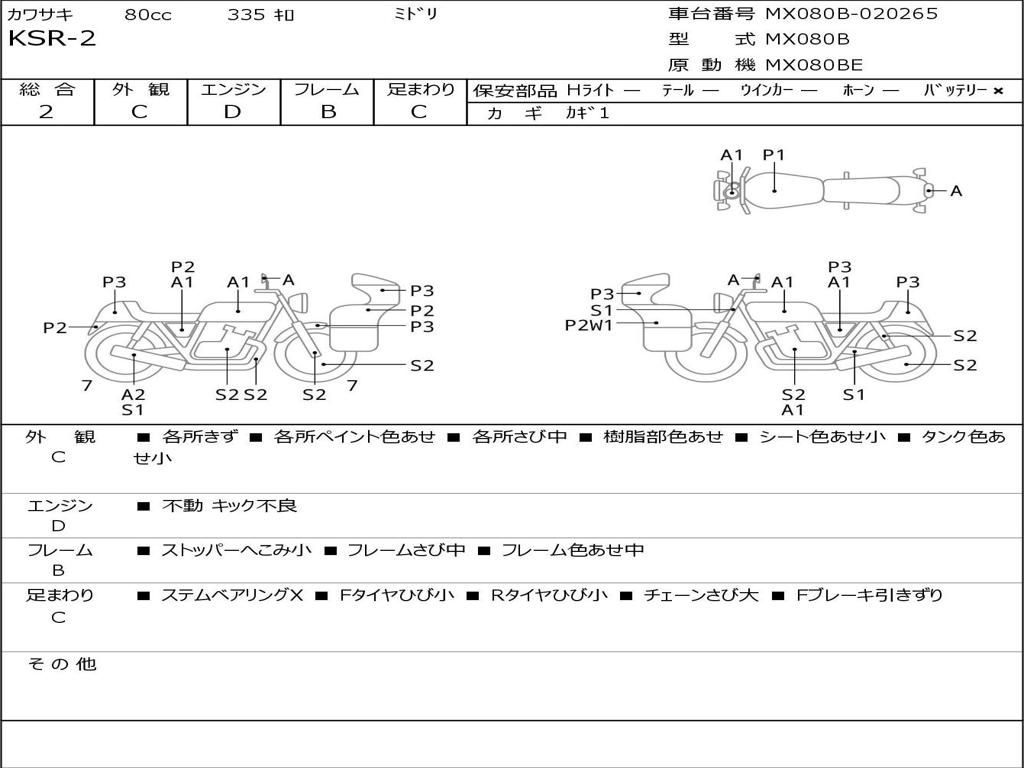 | Номер рамы / VIN | MX080B-020265 |