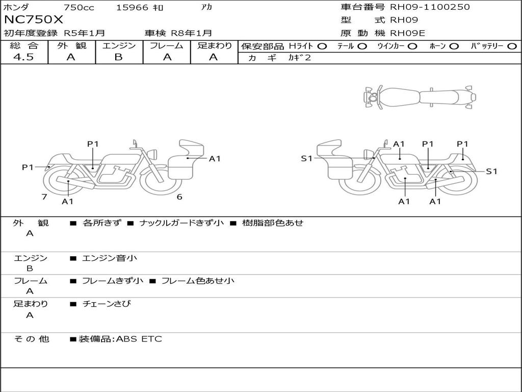| Номер рамы / VIN | RH09-1100250 |