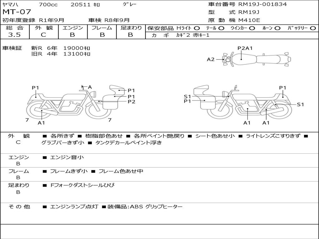 | Номер рамы / VIN | RM19J-001834 |