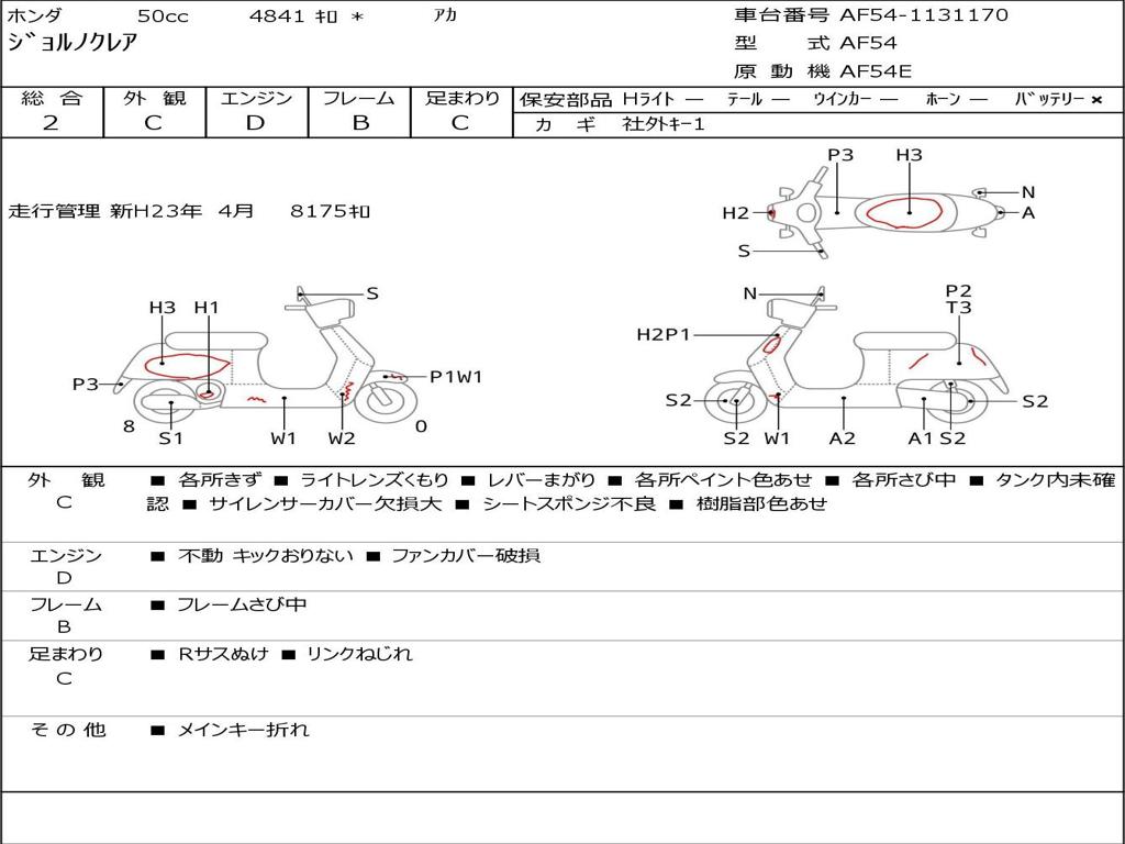 | Номер рамы / VIN | AF54-1131170 |