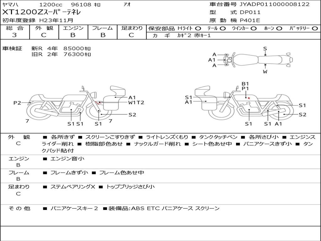 | Номер рамы / VIN | JYADP011000008122 |