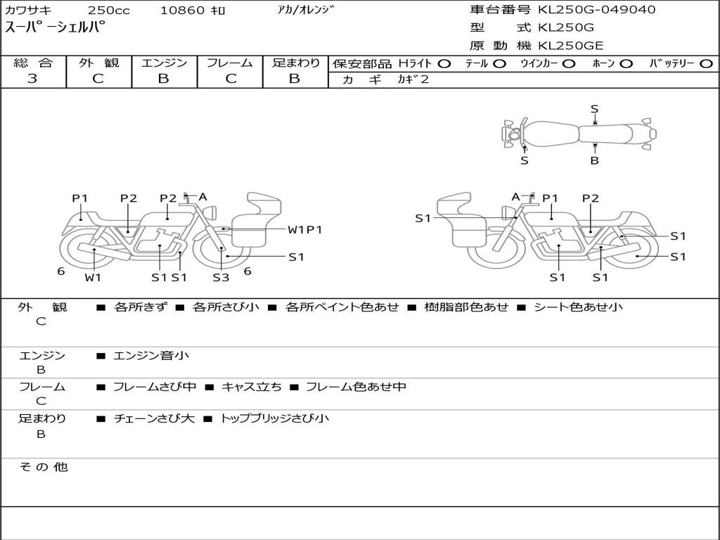 | Номер рамы / VIN | KL250G-049040 |