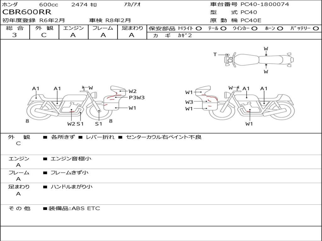 | Номер рамы / VIN | PC40-1800074 |