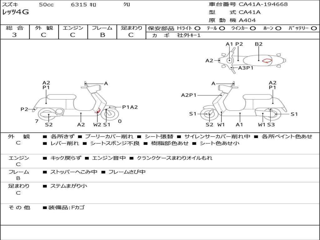 | Номер рамы / VIN | CA41A-194668 |