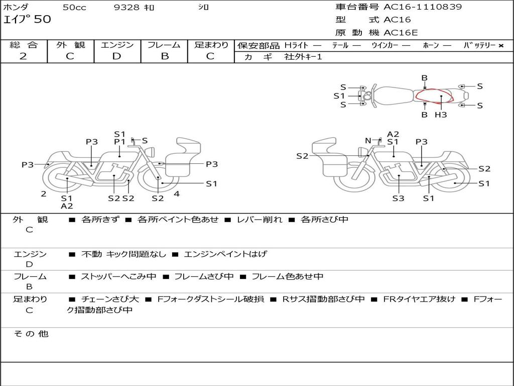 | Номер рамы / VIN | AC16-1110839 |
