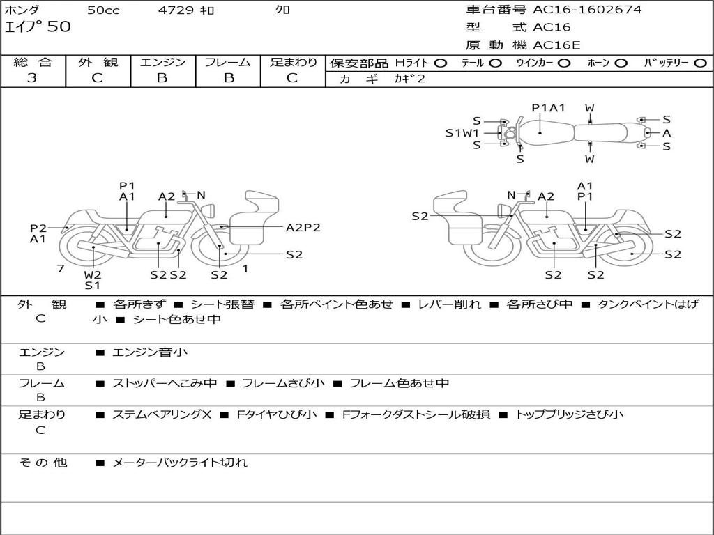 | Номер рамы / VIN | AC16-1602674 |