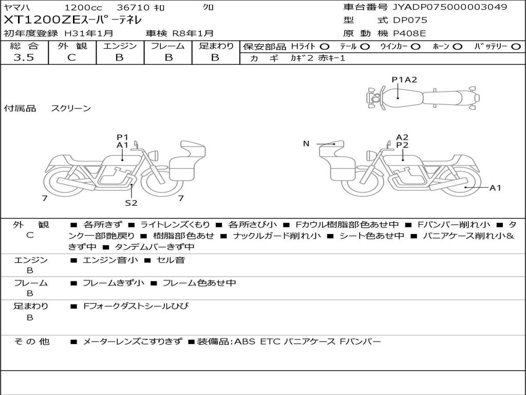 | Номер рамы / VIN | JYADP075000003049 |