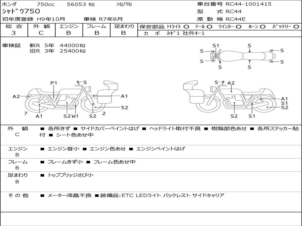 | Номер рамы / VIN | RC44-1001415 |