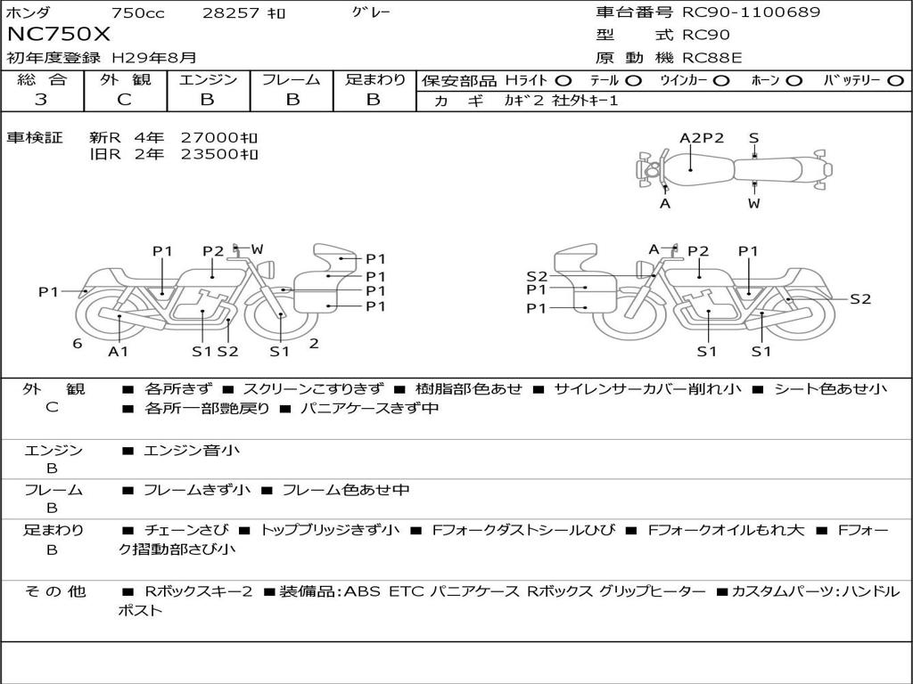 | Номер рамы / VIN | RC90-1100689 |