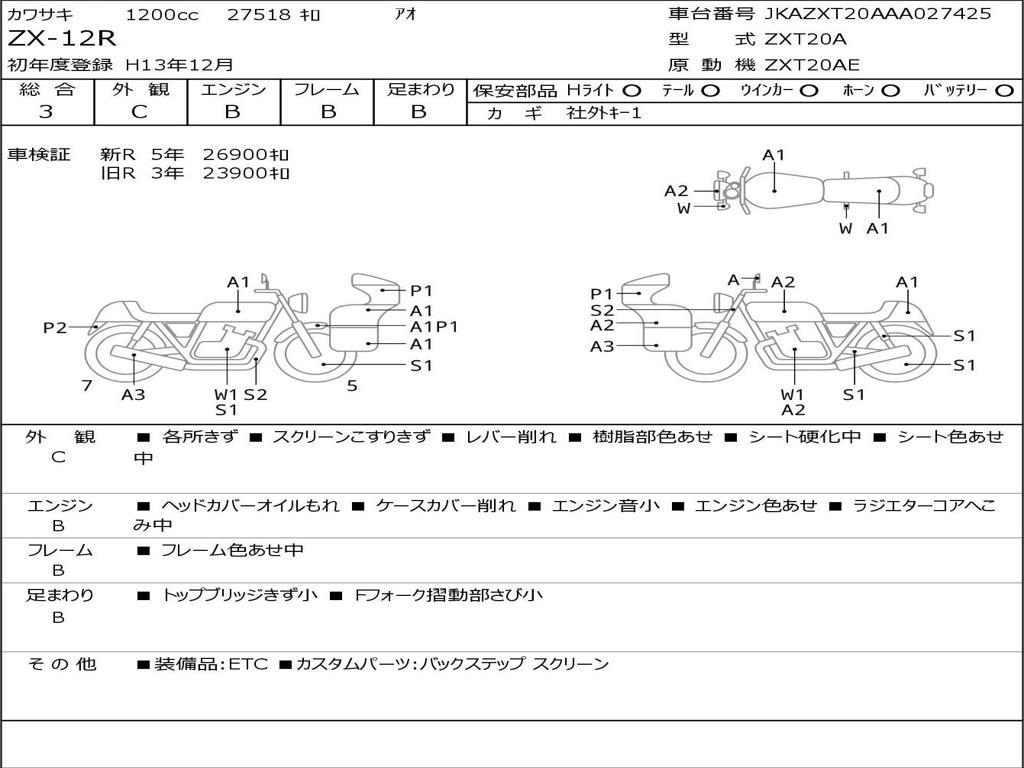 | Номер рамы / VIN | JKAZXT20AAA027425 |