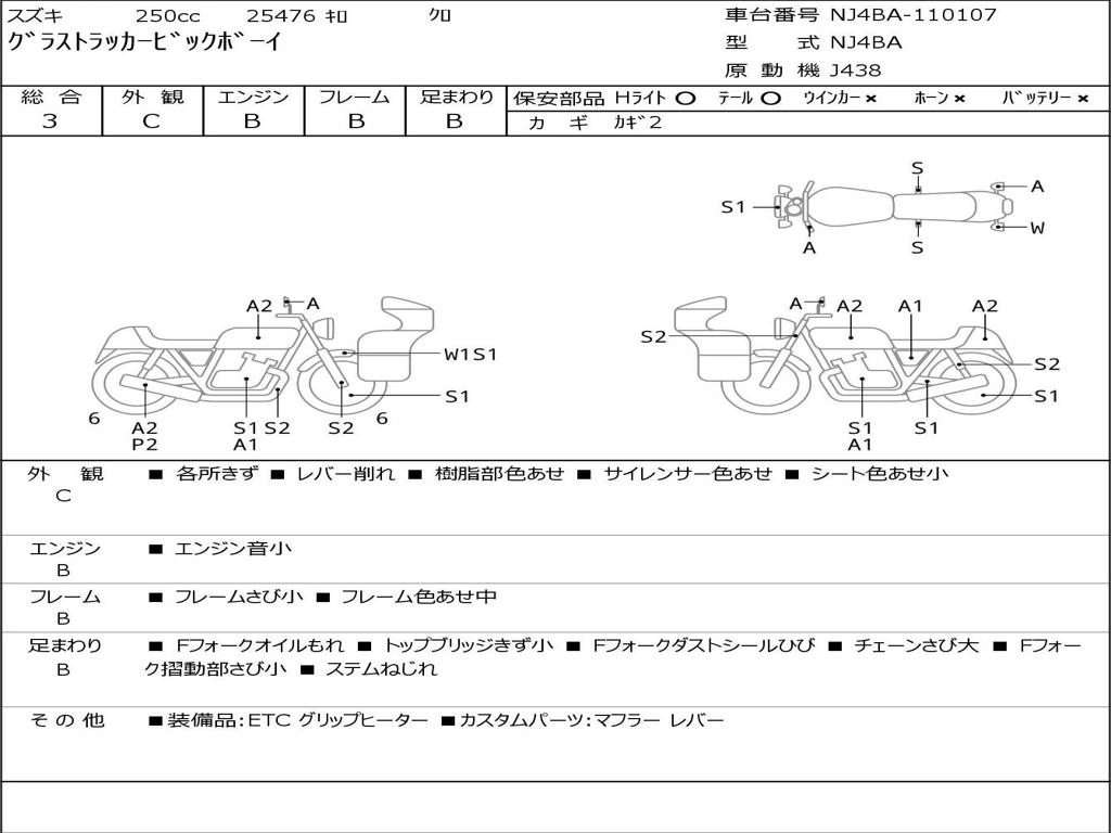 | Номер рамы / VIN | NJ4BA-110107 |