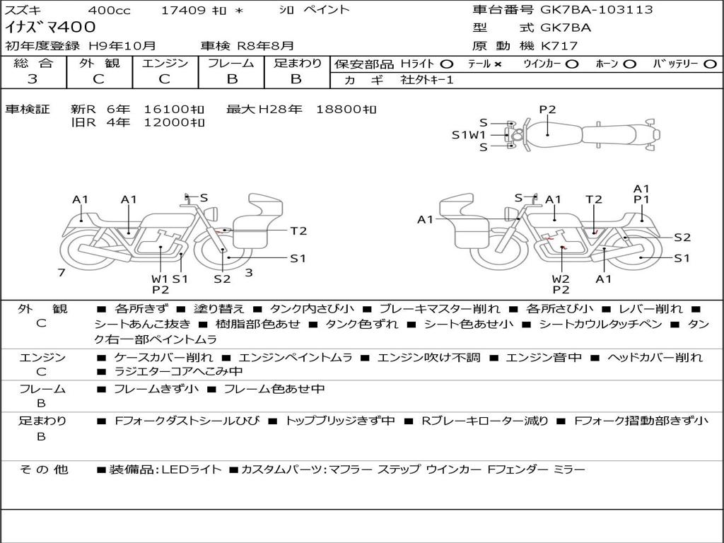 | Номер рамы / VIN | GK7BA-103113 |