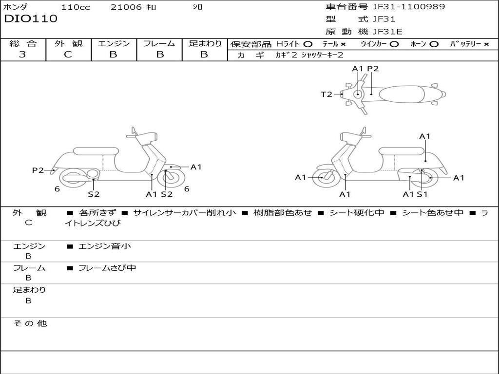 | Номер рамы / VIN | JF31-1100989 |
