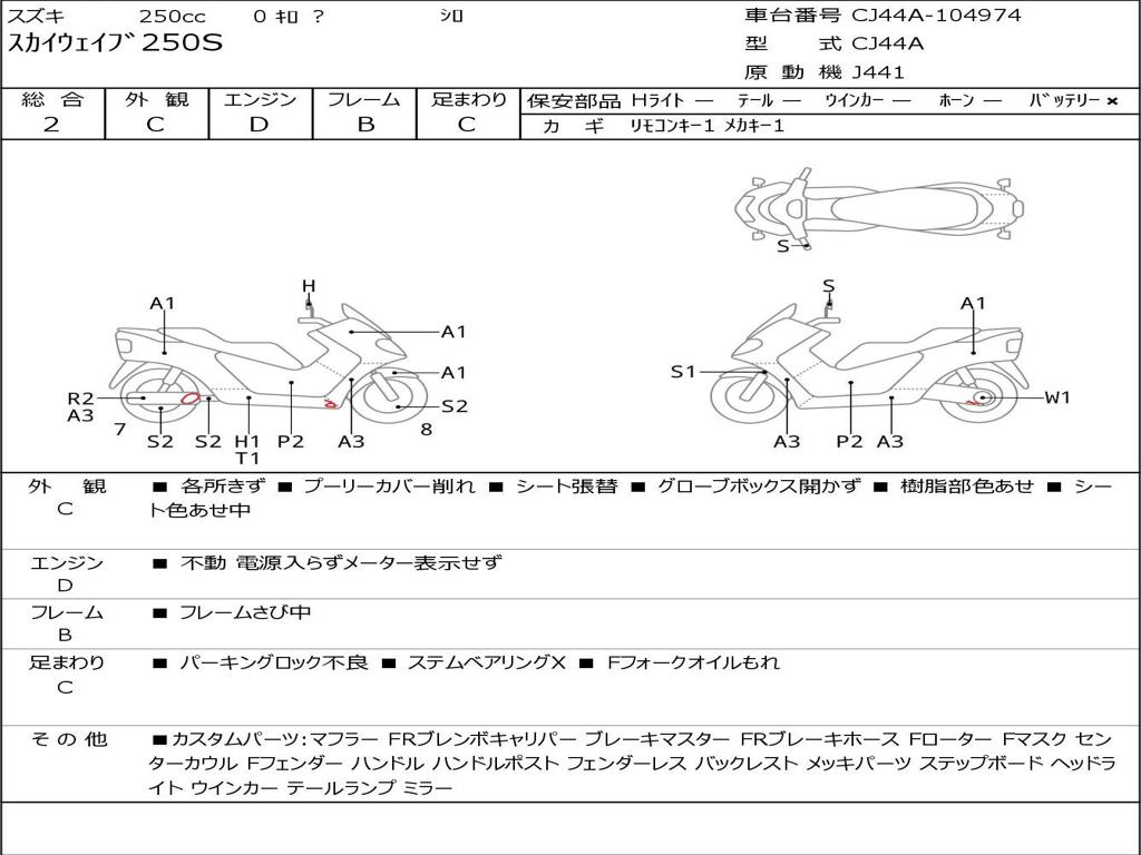 | Номер рамы / VIN | CJ44A-104974 |