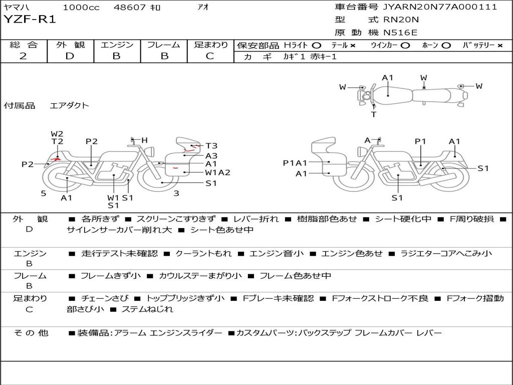 | Номер рамы / VIN | JYARN20N77A000111 |