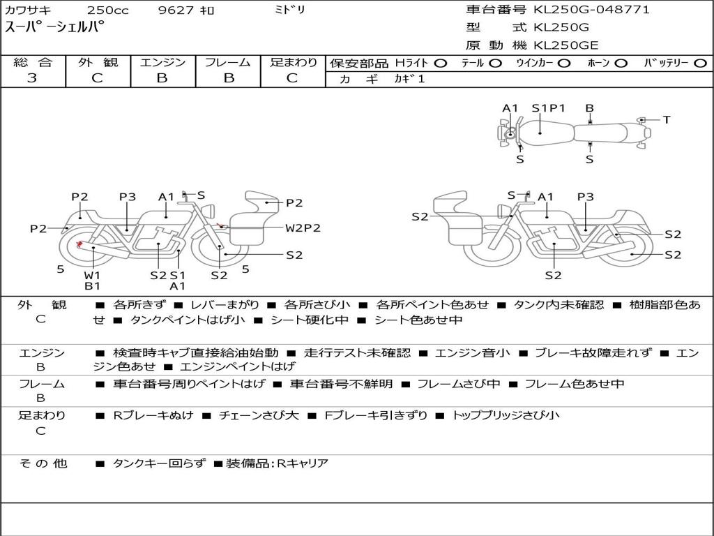| Номер рамы / VIN | KL250G-048771 |